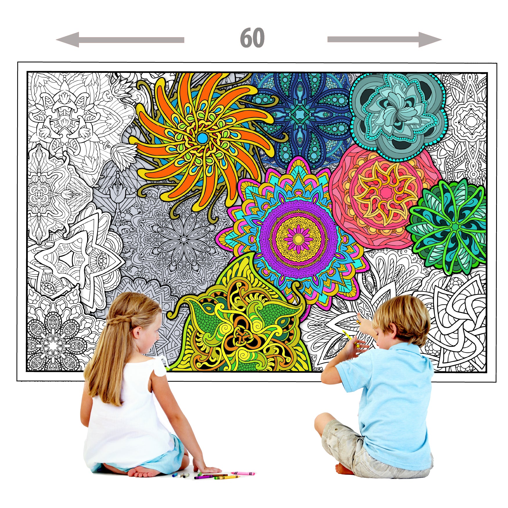 2 Pack of Giant Coloring Posters of Flowers and Mandala