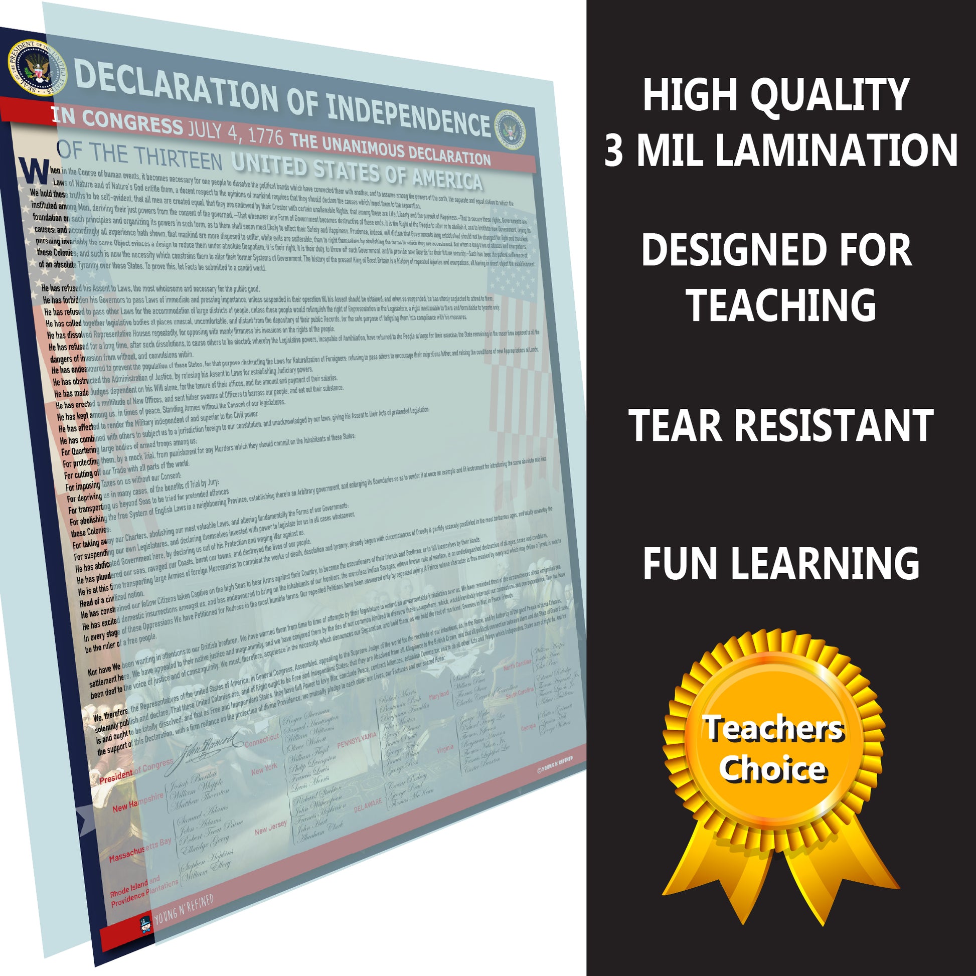 LARGE size Charts include US. constitution (18x24), The Bill of Rights (18x24) and Declaration of Independence (24x36).
