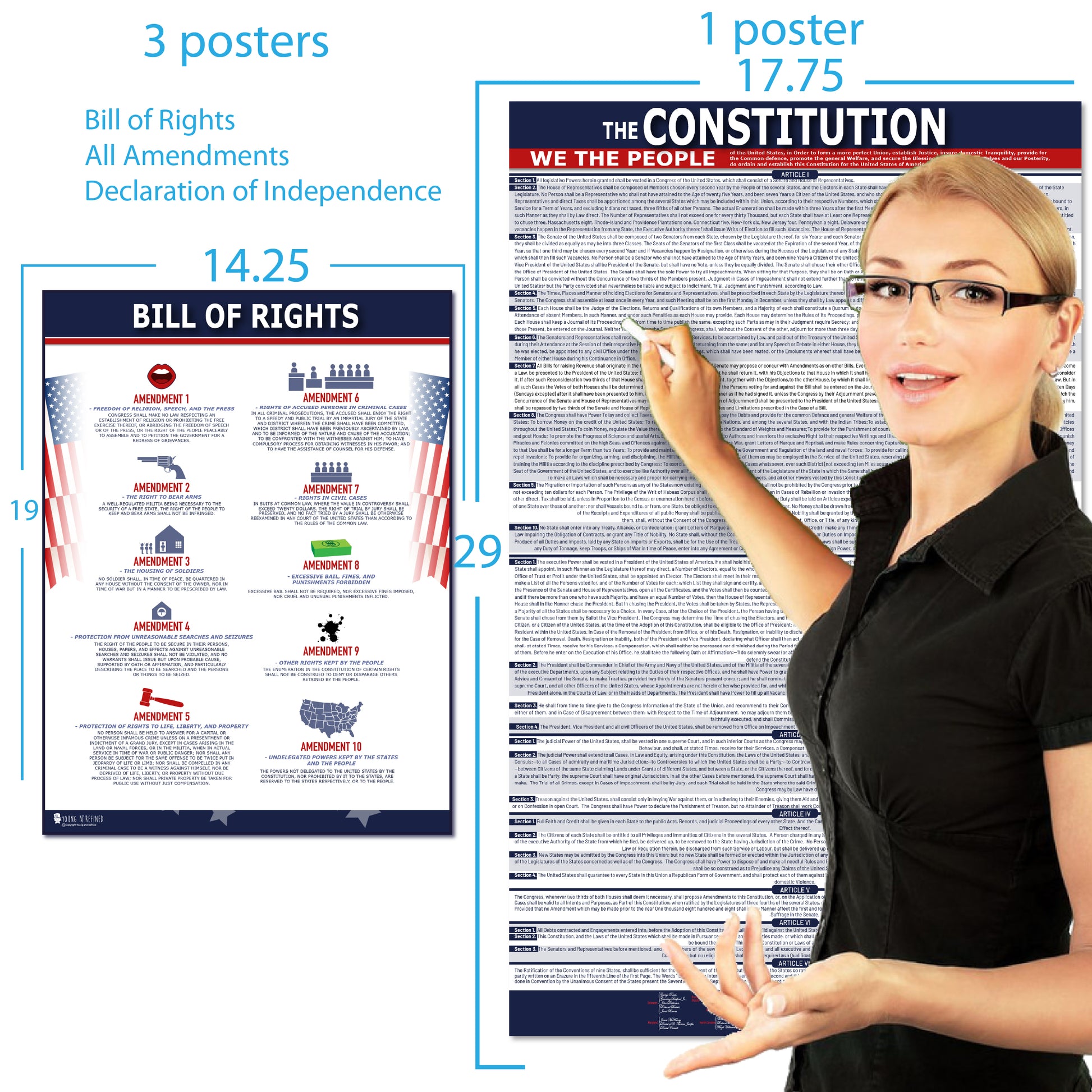 - Charts include the US. constitution (15x19), The Bill of Rights (15x19) and Declaration of Independence (18x30).