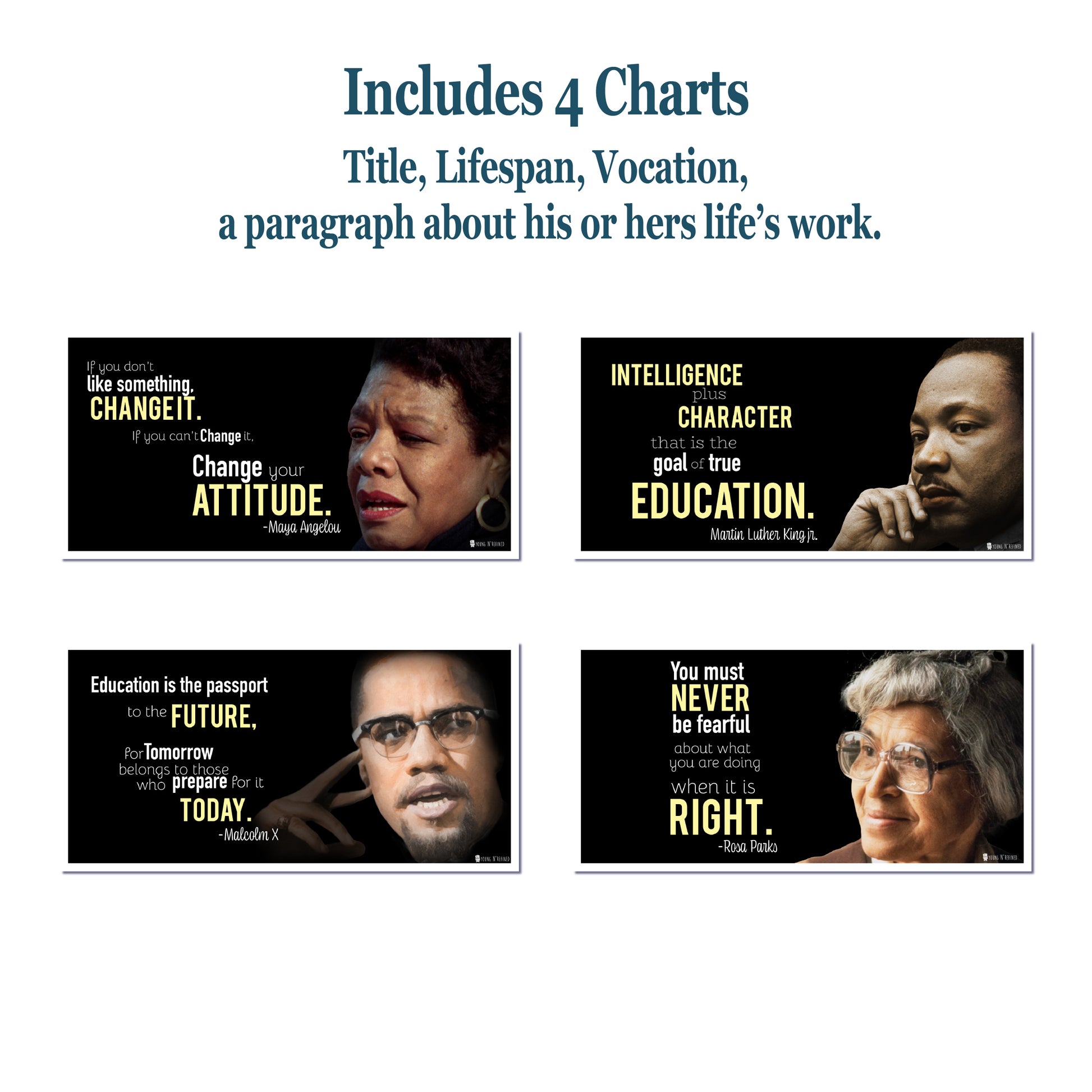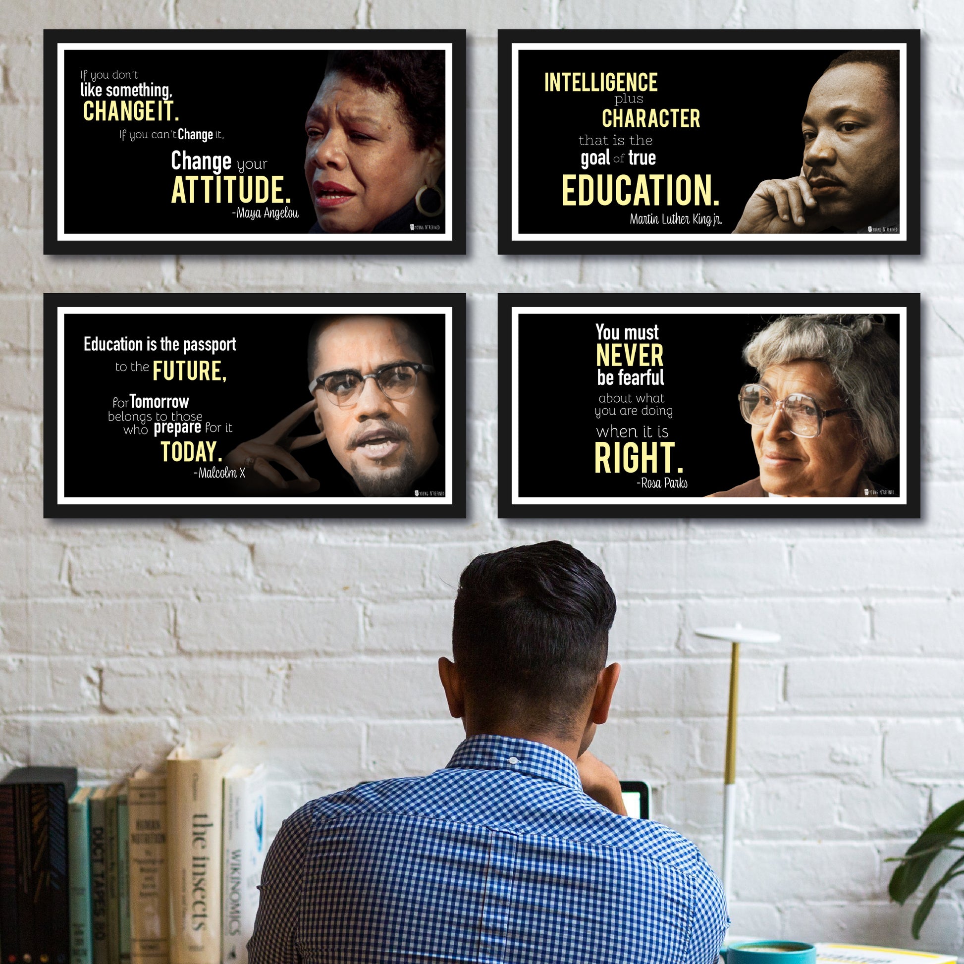 - Black History Month Decoration (4 powerful black history posters) set includes MLK jr. Poster, Malcolm X Poster, Rosa Park, and Maya Angelou Art print.