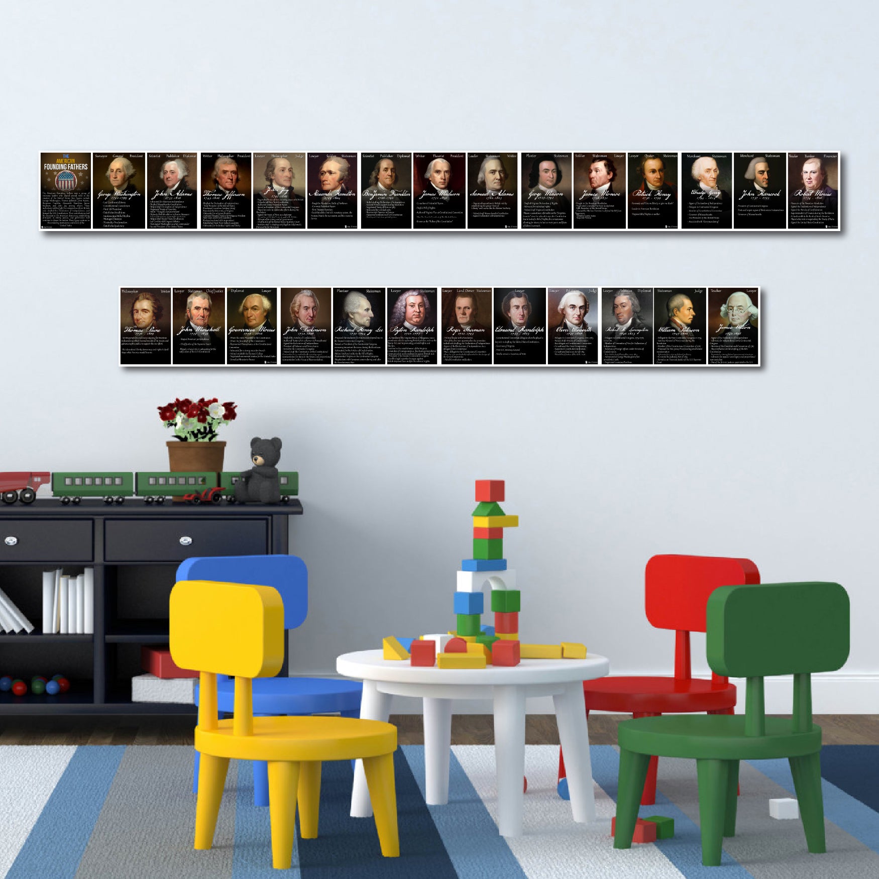 Inspiring Visuals Enhance classroom decor and history education with these informative and visually appealing posters of American Founding Fathers.