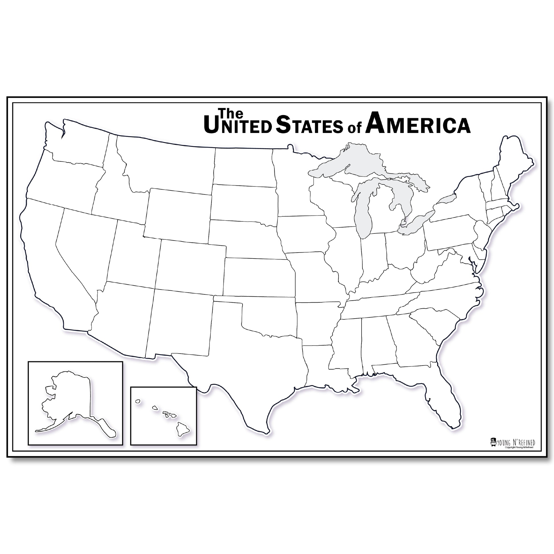 Map of USA Blank Dry Erase LAMINATED 50 states Large Poster Young N Refined