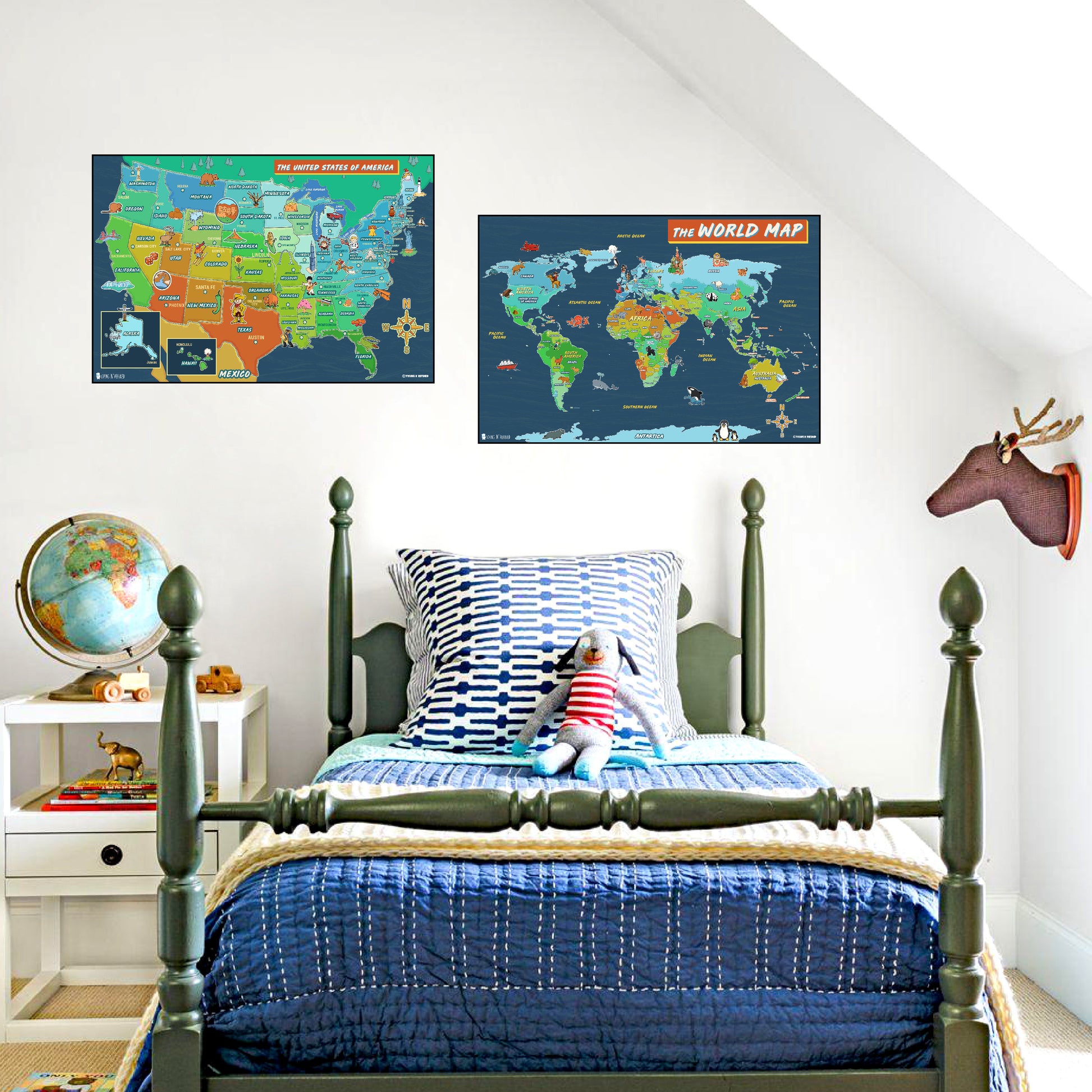 The USA and World map poster 2 pack for kids